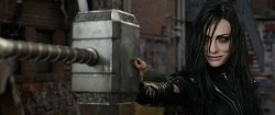 予告編では、ヘラがソーのハンマー攻撃を右手で難なく防ぐシーンが話題となっているが、天海はこのほどこの場面を再現。「気持ちいい」と声を弾ませて小道具のハンマーを押しのける撮影を楽しんだ。