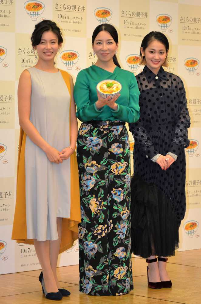「さくらの親子丼」の制作発表会見に出席した(左から)本仮屋ユイカ、真矢ミキ、吉本実憂