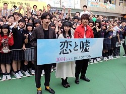 映画「恋と嘘」(監督古澤健、14日公開)に出演の森川葵(22)、北村匠海(19)、佐藤寛太(21)が7日、東京・目黒学院高校の文化祭にサプライズで登場した。