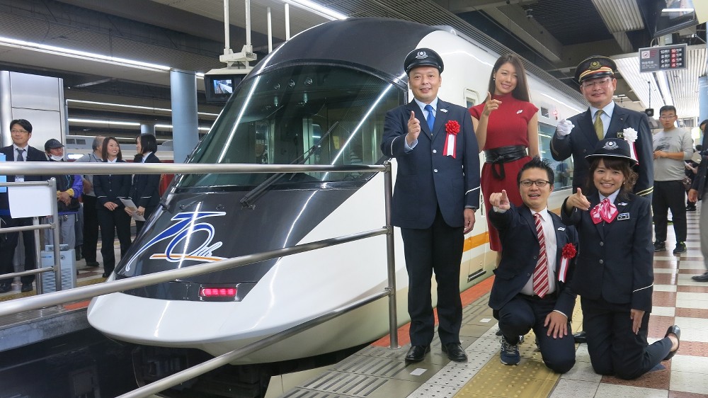「近鉄特急運転開始70周年キャンペーン」が8日にスタートし、鉄道マニアとして有名なお笑いコンビ「中川家」の礼二(45)、ホリプロマネジャーの南田裕介氏(43)らが記念セレモニーに参加した。