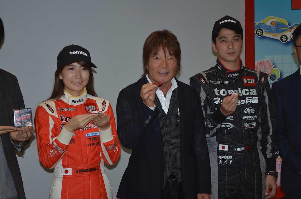 26日に行われたオープニングイベントには、1970年代にスーパーカーブームを起こした漫画「サーキットの狼」を描いた池沢さとし(早人師)氏(67)と、昨年トミカがネッツトヨタ兵庫と結成したレーシングチームのドライバー、今橋彩佳(22)と蒲生尚弥(27)がゲスト出演した。