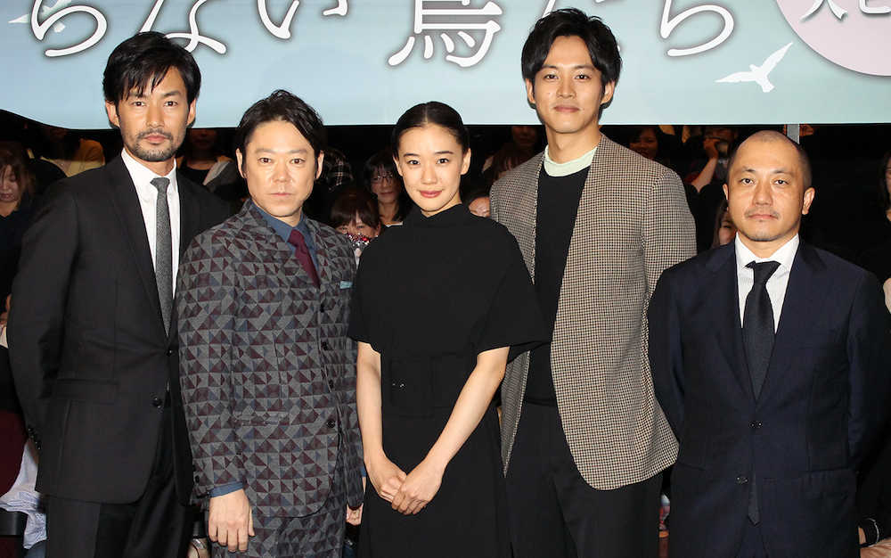 映画「彼女がその名を知らない鳥たち」の初日舞台あいさつを行った(左から)竹野内豊、阿部サダヲ、蒼井優、松坂桃李、白石和彌監督