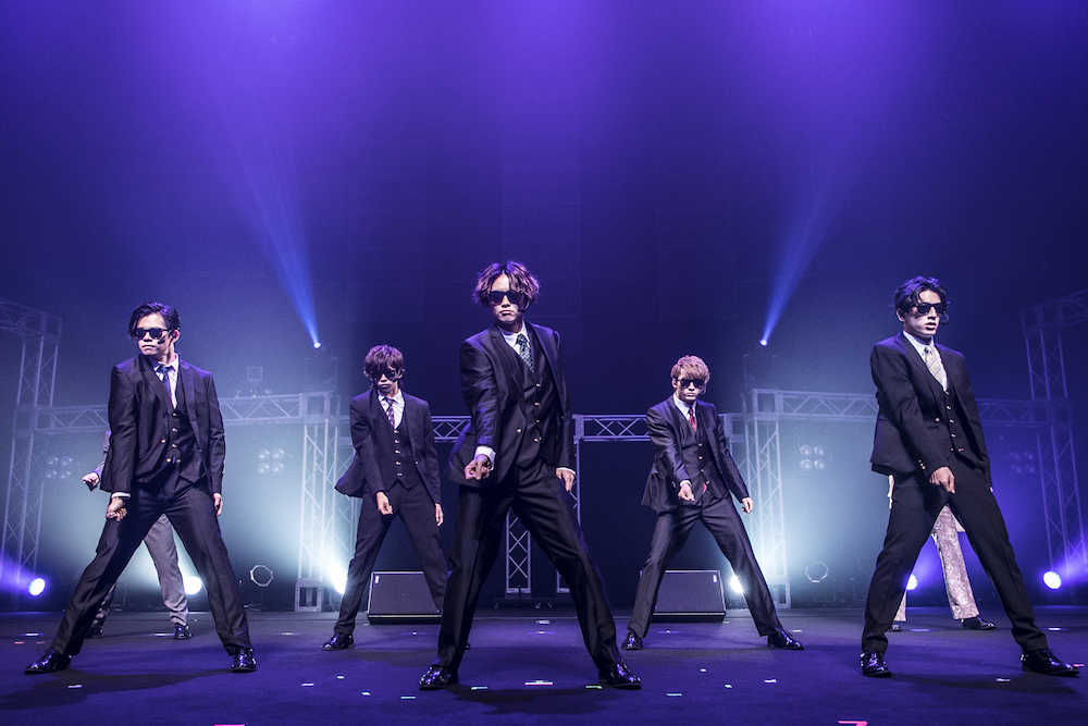 この日はTHE ALFEEとSPYAIRも出演。そのトップバッターを務めた7人は“THE ALFEE・ルックス”で登場。メインダンサーの5人が黒スーツにサングラスで桜井賢、ボーカルのコーイチがグレーのスーツにメガネで坂崎幸之助、タカシがゴージャスな白スーツで高見沢俊彦に成り切って、名曲「星空のディスタンス」を歌唱。会場を一体にして盛り上げた。
