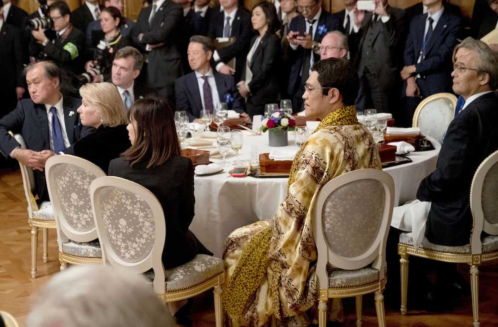 日米首脳の夕食会に出席したピコ太郎(手前右)