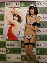 破廉恥なメイドをイメージした水着で登場。自身初のカレンダーで「ザ・ハレンチボディーを堪能できるカレンダーになってます」と笑顔でPR。飾ってほしい場所を聞かれ、「ベッドの上の天井。朝起きた時に目につく場所がいい!」と提案した。