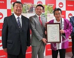 「かしわら笑顔大使」の間寛平 誰でも落書きできる案を提唱