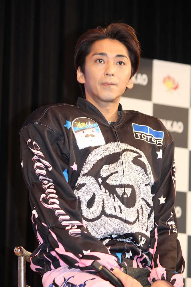 元「SMAP」メンバーでオートレーサーの森且行(43)が11日、埼玉・川口オートレース場で「パチンコCRオートレース〜スピードスター森且行!〜」プレス発表会に出席した。