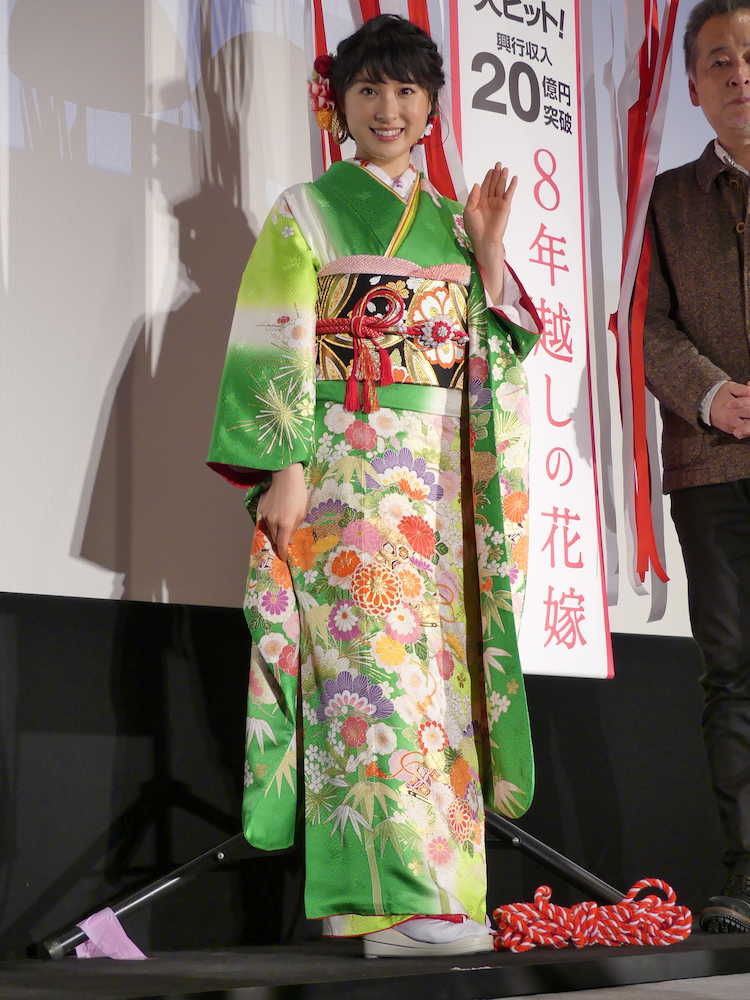 土屋太鳳(22)が14日、都内で興行収入20億円を突破した映画「8年越しの花嫁」(監督瀬々敬久)の大ヒット御礼舞台あいさつを行った。