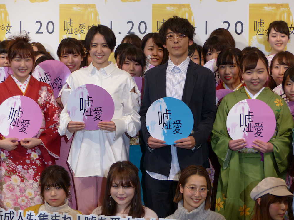 女優の長澤まさみ(30)と俳優の高橋一生(37)が14日、都内で映画「嘘(うそ)を愛する女」(20日公開)の試写会に登場した。