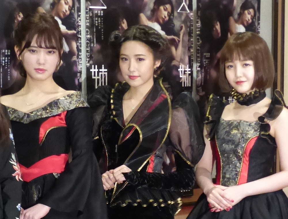 衛藤が長女、伊藤が次女、久保が三女役。実際は兄、弟がいて姉妹がいない衛藤だが「乃木坂に40人ぐらいの妹(年下メンバー)がいるので役作りには困らなかった」と笑顔。久保は「メークしてくれたり、本当のお姉ちゃんみたい」と甘えた。来月4日まで上演される。