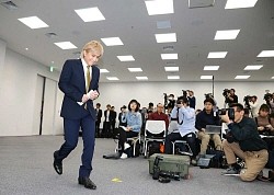 会見の席へ向かう小室哲哉