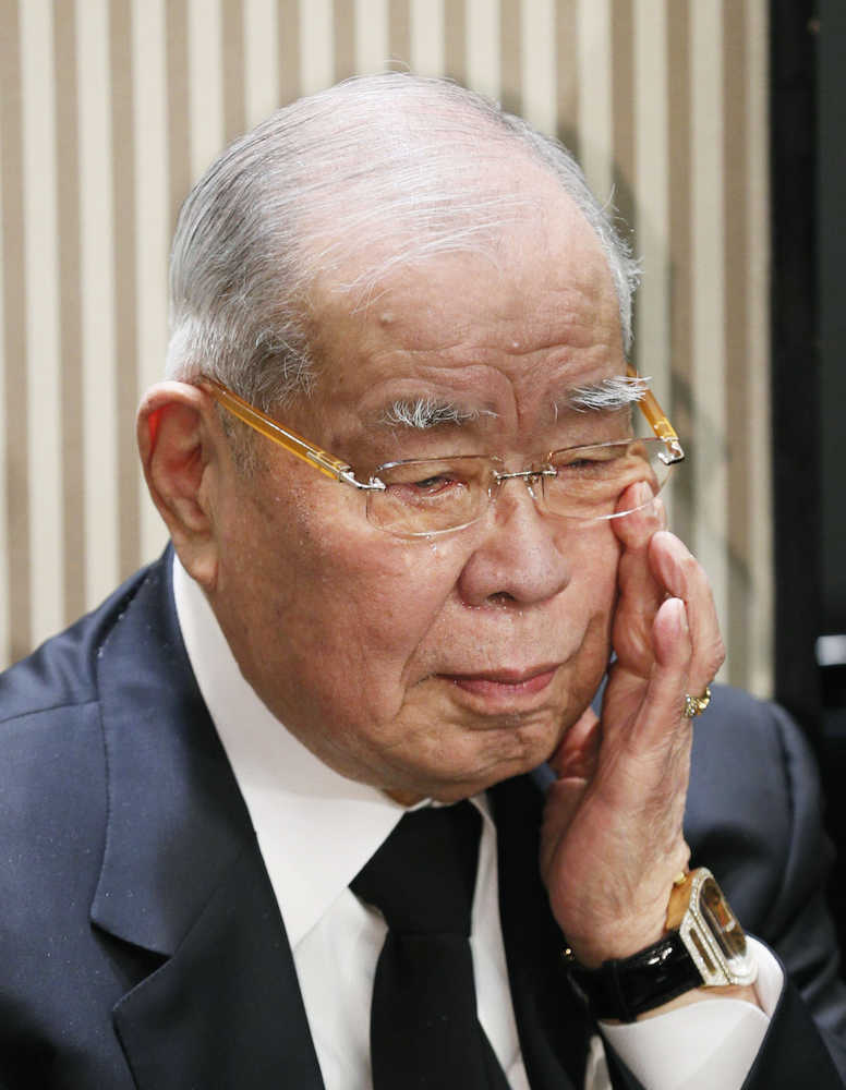 野村沙知代さんお別れの会であいさつする野村克也氏