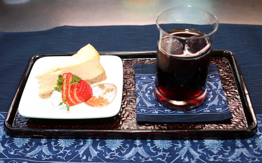 <王将戦第2局>久保王将10時30分のデザートはチーズケーキとアイスコーヒー