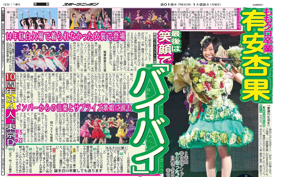ワイドショーデスク ももいろクローバーZのメンバーだった有安さんは先月21日に卒業。所属事務所との契約も満了し芸能界引退となった。