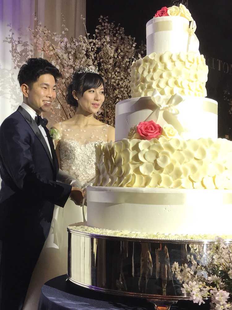 昨年末に現役を引退したボクシングの元世界3階級制覇王者の井岡一翔氏(28)と妻で歌手の谷村奈南(30)が3日、都内で結婚披露宴を行った。