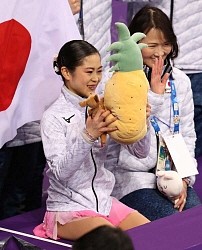 パイナップルが縁の宮原に、ピコ太郎は「フィギュア選手の皆さんにPPAPを踊ってもらって本当にうれしかったですし、私は8回転ルッツ回りながら応援したいと思いますピ!!宮原選手、クルクルクルーってピタって頑張ってくださいませぴ!」と興奮度マックス。一緒に踊った羽生は金、宇野は銀に輝いており「PPAP」パワーを受け、宮原は氷上を華麗に舞う。