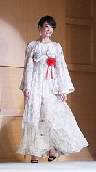 自身3度目となる最優秀女優賞もあわせて受賞。背中をほぼ全て露出した大胆なワンピースドレス姿で登壇し「緊張してます。素晴らしい先輩を差し置いてこの席にいることの居心地の悪さったらない」と苦笑い。「これまで大賞を受賞されてきた先輩の名前をうかがって膝が震えた。これからも表現者として努力したい」と話した。