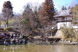 今回は、戦国武将・真田幸村のおじにあたる真田高勝の墓がまつられた真田家ゆかりの寺「龍顔寺」住職からのSOS。龍顔寺では、昨年8月の豪雨で樹齢300年の御神木が池に崩落。「御神木を池から取り除き、外来種も駆除したい」という依頼に応えるべく、ロンドンブーツ1号2号の田村淳(44)と池松が現場に急行する。