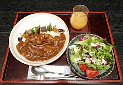 久保王将のランチは花月仕込みハッシュ・ド・ビーフと信州りんごジュース