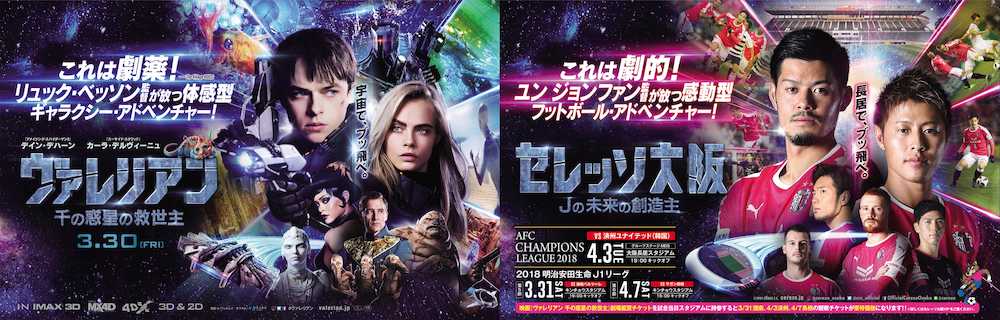 「レオン」などで知られる名匠の最新作は、2740年の宇宙を舞台に陰謀に立ち向かう主人公ヴァレリアンらの戦いを描く。同映画関係者は今年、天皇杯と富士ゼロックス・スーパー杯を制したC大阪のプレーに「自由奔放なイマジネーションとエキサティングなアクションシーンがさく裂する」とタッグ結成を説明した。