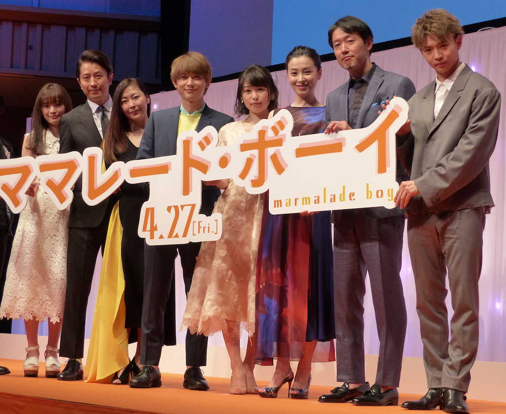 女優の桜井日奈子(20)、俳優の吉沢亮(24)が21日、都内でダブル主演映画「ママレード・ボーイ」(監督廣木隆一、4月27日公開)の完成披露試写会に出席した。