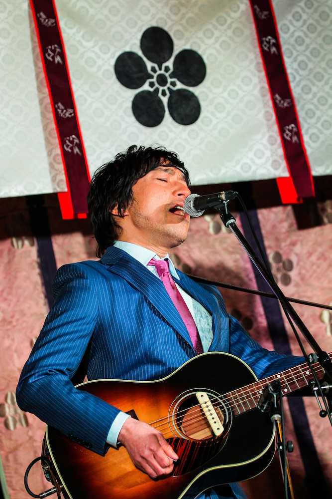 大阪天満宮で歌うトータス松本