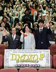 月9視聴率の低迷が指摘される中、11年ぶりの同枠主演。昨年12月から撮影が続いており「みんなの期待を背負って撮影してきましたが、出せるものは出せたかな」と充実した様子を見せた。詐欺師3人組の姿を描く痛快コメディー。共演の東出昌大(30)、小日向文世(64)も出席した。