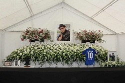祭壇は白や緑、紫、黄色といった草花が並ぶ「野原」をイメージしたもの。遺影は長男で写真家の隼平氏(35)が撮影。所属するサッカーチーム「鰯クラブ」の愛用のユニフォームや熱狂的なサポーターとして知られるサッカーJ2徳島の年間パスポートも供えられた。戒名は「優月院漣奏球孝信士(ゆうげついんれんそうきゅうこうしんじ)」。「月を見て偲びたい」「漣は親しんだ芸名」「球は愛したサッカー」「孝は生まれたときからの名」という思いで、月、漣、球、孝を希望したといい、これに「優しい人柄であり、俳優の“優”を」「表現する・演奏するの“奏”を加えたという。月の光のように穏やかに輝いていたという意味も込められた。所属事務所の代表取締役でもある妻の弘美さんは「少し長い名前を持つことになった大杉。『そちらでも元気にやっていて。またね!』と送りたい」と言葉を添えた。