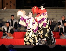 大本堂前の特設舞台では奉納演舞「連獅子」を披露。連獅子は親子の獅子が長い毛を地面に着けないよう頭を振り回す「毛振り」で知られる。10年前の開基1070年祭では父・団十郎さんと舞った。10年後には勸玄君と「一緒にやるかもしれないですね」と将来の父子共演を夢見ていた。