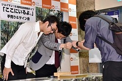 お笑いコンビ「ジョイマン」の高木晋哉(37)と池谷和志(37)が14日、都内でジョイマン15周年記念単独ライブ「ここにいるよ。」の手売り&サイン会を開催。同単独ライブのチケットが完売しなければ“解散”という公約を掲げていたが、無事にチケットを売り切り、コンビの解散を免れた。