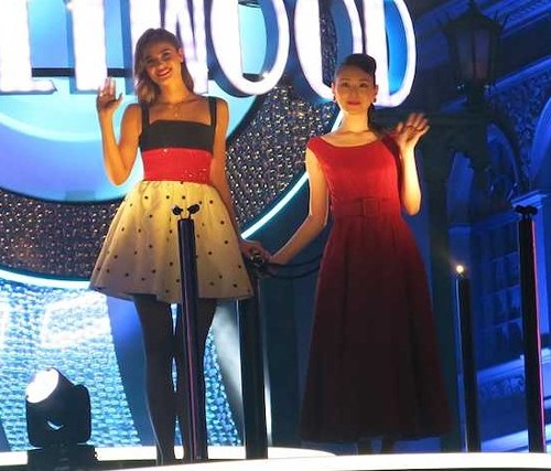 USJで開催された「ユニバーサル・スペクタクル・ナイトパレード」でパレードの先頭を行く栗山千明(右)とテイラー・ヒル