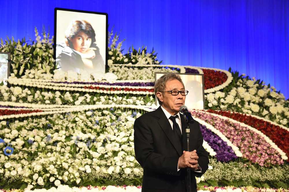 大野誠さんのお別れの会であいさつする実父の北島三郎