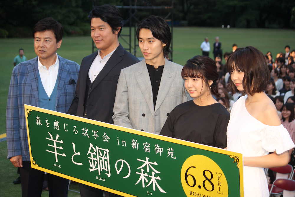 同作は16年の本屋大賞を受賞したベストセラー小説を映画化。ピアノの調律に魅せられ、ピアノと繋がる多くの人と出会い成長していく青年の物語。タイトルの森にちなみ史上初、新宿御苑での野外試写会が行われた。