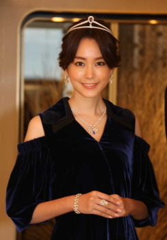 ショーメのティアラやジュエリーは初代皇帝ナポレオン一世と皇后ジョゼフィーヌの戴冠式や、オーストリア・ハプスブルク家の女王・マリー・ルイーズの婚礼の際など、世界の王室や貴族の晴れ舞台で着用されてきた歴史がある。ティアラ、ネックレス、指輪など、総額約1億5千万円ものジュエリーを身につけた桐谷は「本当に光栄です。普段なかなかこういったジュエリーを付ける機会はあまりないんですけど、付けてみますと、気分が高揚しますし、キラキラを見ていると嬉しい半面、ドキドキもします。とても嬉しいです」と満面の笑み。