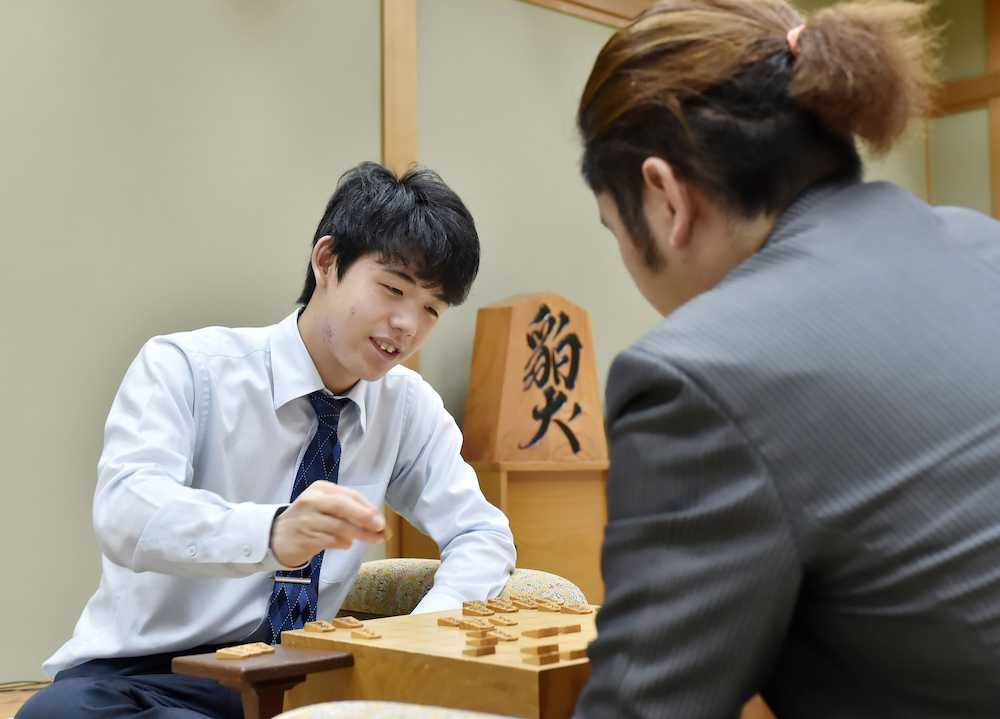 先月18日に15歳9カ月で史上最年少七段昇段を果たしてから初の公式戦。上座に陣取り、肩書も変わったが「いつも通りの気持ちで指した」という盤上では落ち着いた表情で、初対戦も苦にせず今年度6連勝を飾った。
