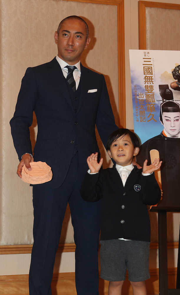 長男・堀越勸玄(かんげん)くん(5)も登場。今回初めて昼夜で2役を務める息子の稽古について「毎日泣きながらやってます。今朝も泣いてました」と話すなど厳しく指導している様子だった。