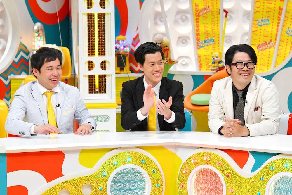 MBSテレビ「メッセンジャーの○○は大丈夫なのか?」で爆笑トークするゲストの(左から)「霜降り明星」せいや、粗品、「ドランクドラゴン」鈴木拓