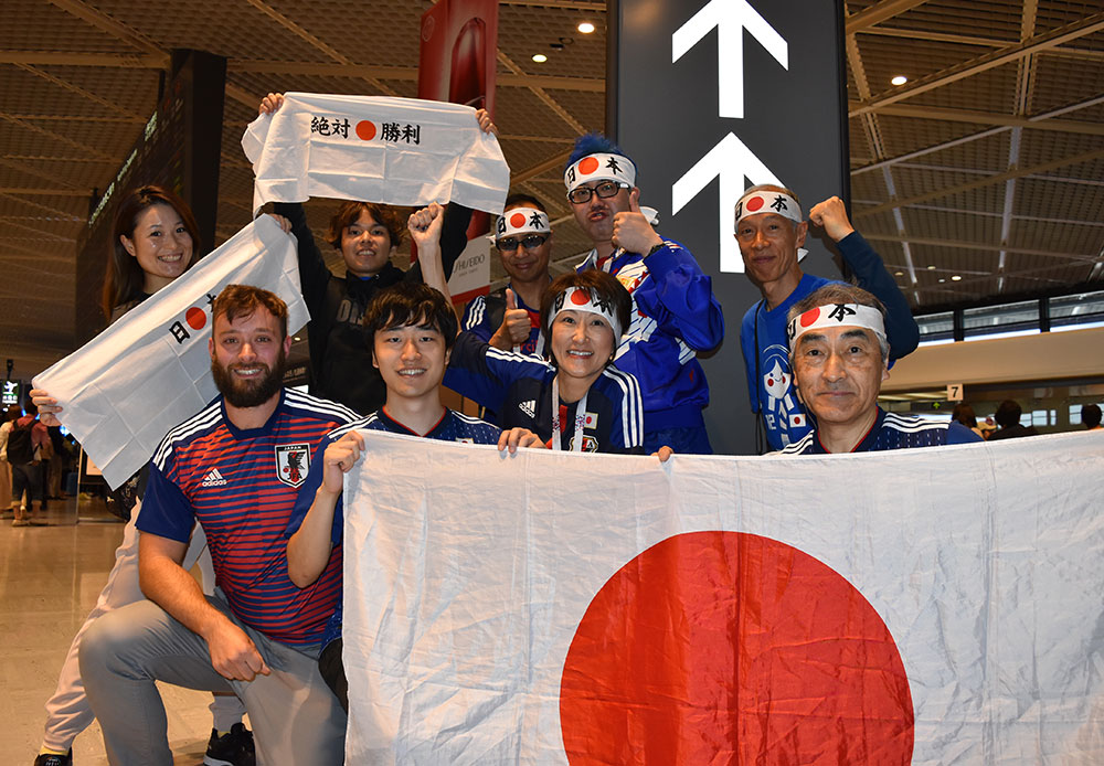 コロンビア戦を翌日に控えた18日、成田空港で青いユニホーム姿のサポーターを取材した。夫、息子と家族3人で日本の1次リーグ3試合をすべて観戦するという東京都の50代の女性会社員は「ハチマキ20本持って行きます。100本買った人もいるみたい」と笑顔。東京都の飲食店勤務の男性(24)は「SNSで知って参加しようと思った」と20本ほどを旅行カバンに詰めたという。神奈川県の20代と30代の女性会社員2人組は「近くの席のロシア人を味方につけます」と手にしたハチマキを握りしめた。