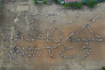 桑田母校小学校でお祝い人文字“サザン40周年おめでとう”1000人参加