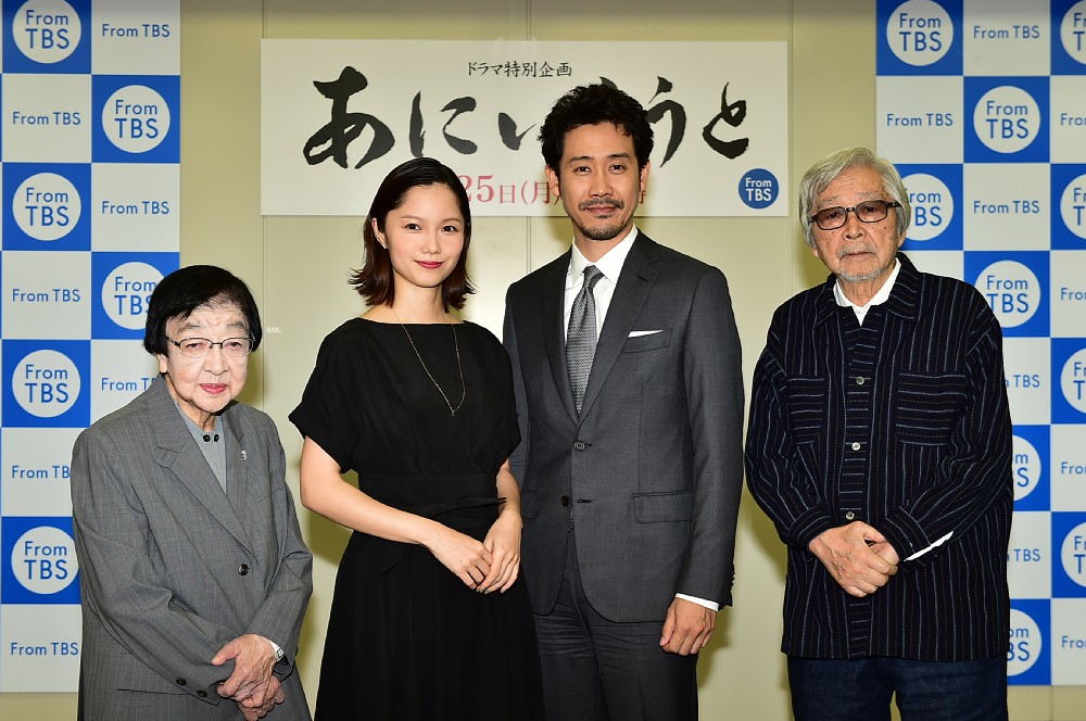 TBSドラマ特別企画「あにいもうと」でチームを組む(左から)石井ふく子氏、宮崎あおい、大泉洋、山田洋次氏(C)TBS