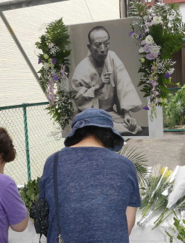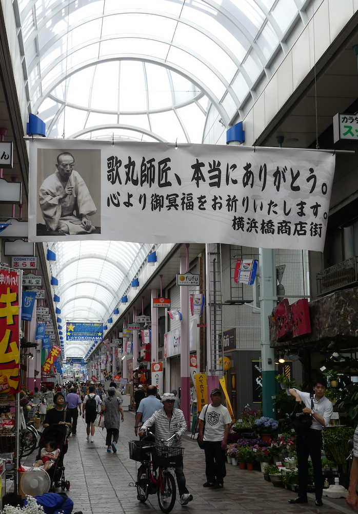 強い結びつきを示すように、この日の商店街は歌丸さん一色。商店街のほぼ中央に献花台が設置され、約1200人が手を合わせた。歌丸さんへの感謝の言葉が書かれた横断幕(縦1・2メートル、横3・4メートル)も掲げられ、商店街のBGMは歌丸さんの落語に変更された。