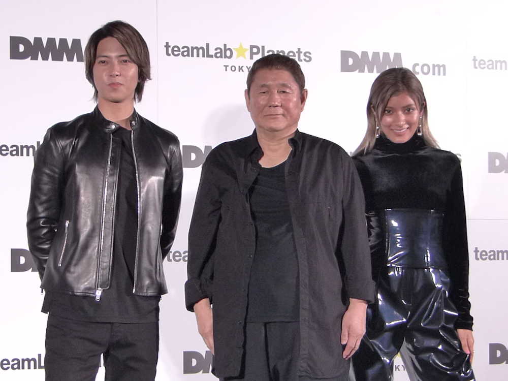 東京・豊洲の体感型施設「チームラボ プラネッツ TOKYO DMM.com」が7日、開館し、CMキャラクターのビートたけし(71)、山下智久(33)、ローラ(28)がオープニングセレモニーを行った。
