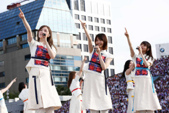 メンバーが選抜とアンダーに分かれ、両会場を自転車などで最大3往復。全38曲を熱唱し、アンコールでは8月8日発売の第21弾シングル「ジコチューで行こう!」を初披露。6作ぶりセンターの斎藤飛鳥(19)は「とても盛り上がれるので、愛される楽曲になればいいな」と笑顔でアピールした。