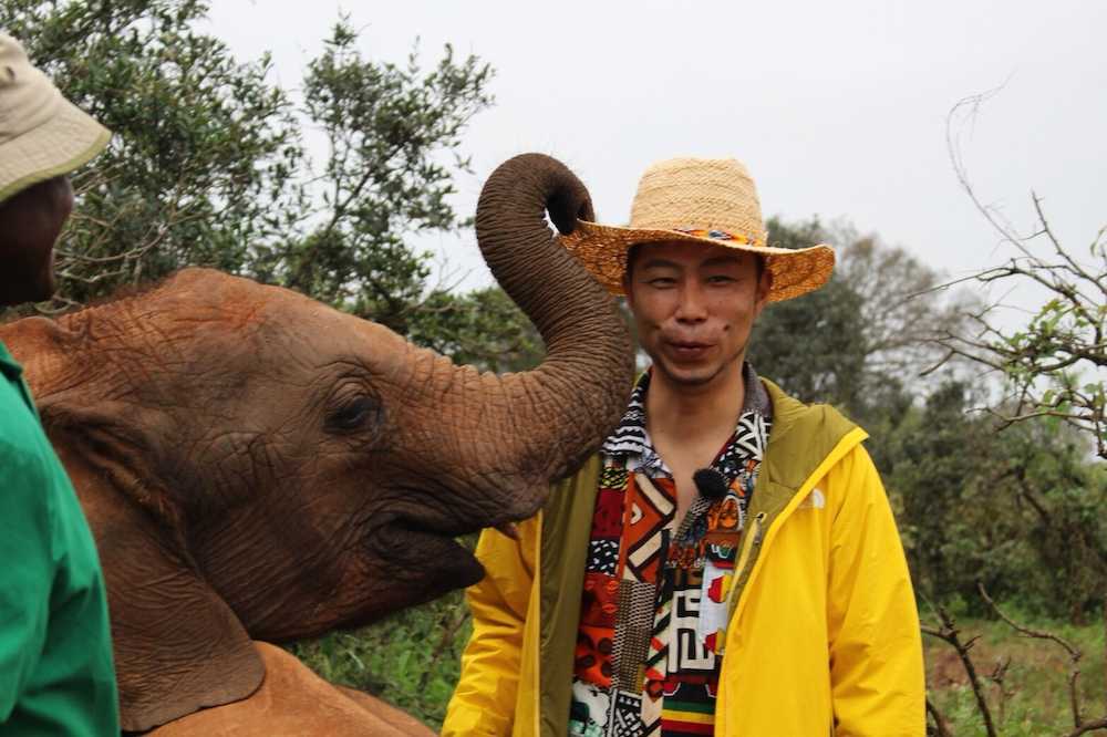 ケニア・ナイロビの「象の孤児院」を訪れ、小象と触れ合うEXILEのUSA