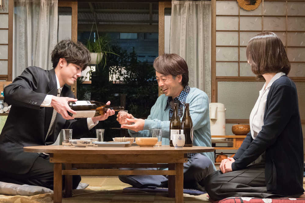 連続テレビ小説「半分、青い。」第91話の1場面。楡野家の面々と打ち解ける涼次(間宮祥太朗、左)(C)NHK