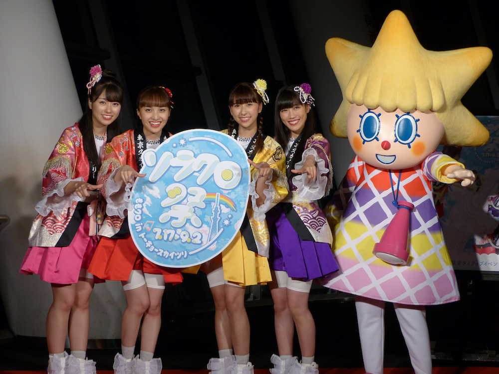 グループ結成10周年を記念し、スカイツリーが初めてアイドルとコラボ。過去のライブ映像などを使ったオリジナルコンテンツが上映され、高城れに(25)は「自分たちのことなのに感動しました。10年やっててよかった」と感激していた。