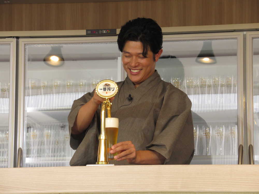 「球場でビールをつぐアルバイトをしていたことがある」と明かし、ビールカウンターでプロ並みの手つきで華麗にサーブ。来場者に商品を振る舞い「今年は暑いが、おいしい夏にするチャンスだと思う」と呼びかけた。