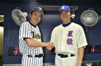 松井秀喜氏 26年ぶり星稜ユニホームに袖、石橋貴明と対決