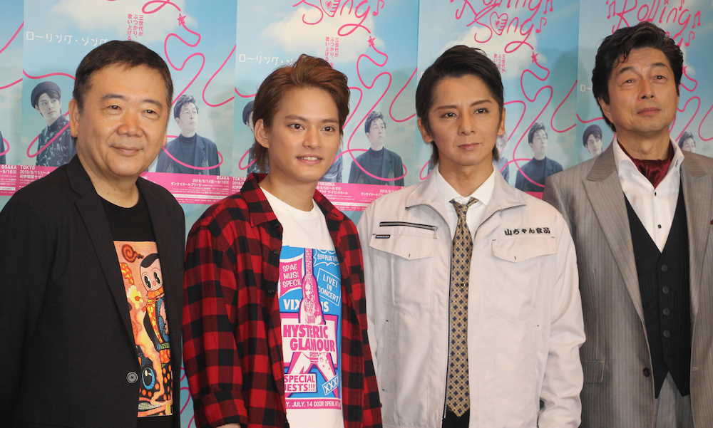 歌手で俳優の中山優馬(24)が11日、都内で行われた音楽劇「ローリング・ソング」(11日〜、東京・紀伊国屋サザンシアター)の囲み取材に共演の松岡充(46)、中村雅俊(67)、作・演出の鴻上尚史氏(60)とともに出席した。