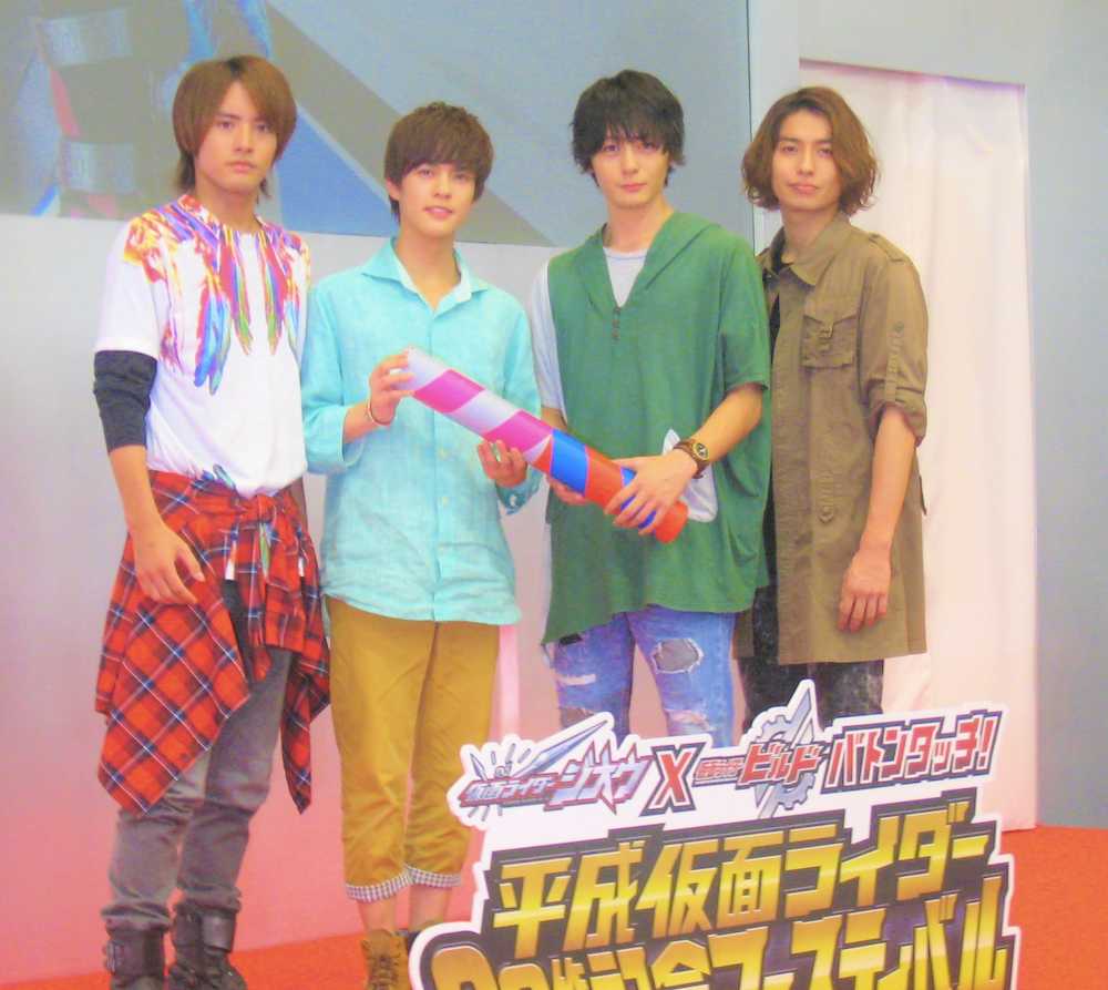26日に最終回を迎える「仮面ライダービルド」に主演した俳優の犬飼貴丈(24)や、9月2日スタートの「仮面ライダージオウ」に主演する俳優の奥野壮(18)らが参加。犬飼は「ビルドは終わるが、ジオウが始まる。仮面ライダーは永久に不滅です!」とアピール。ステージで犬飼からバトンを受け取った奥野は「始まるのが楽しみ」と笑顔を見せた。